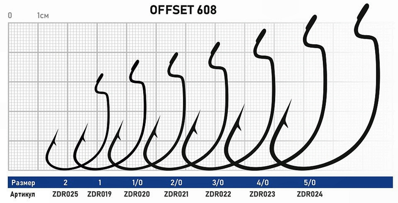 Крючок Offset ZUB 608 # 5/0 (упак. 5 шт)