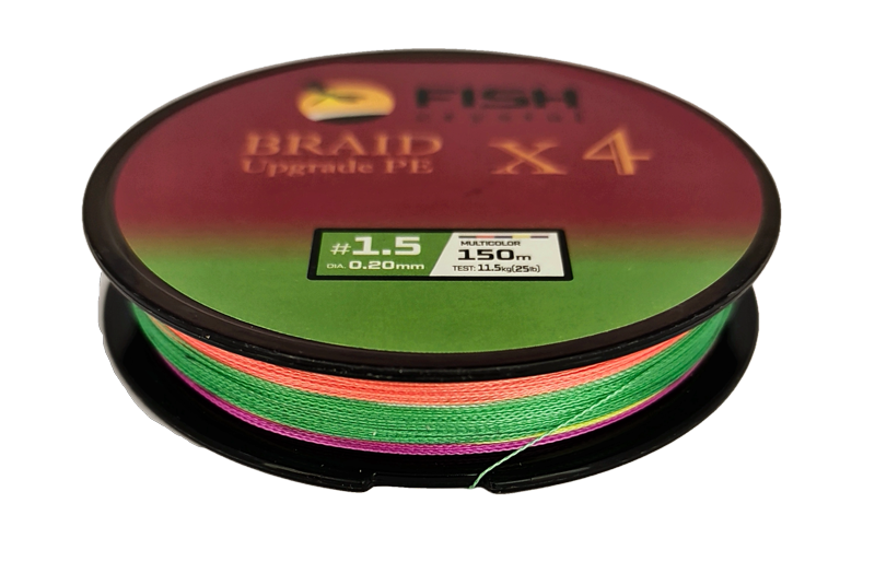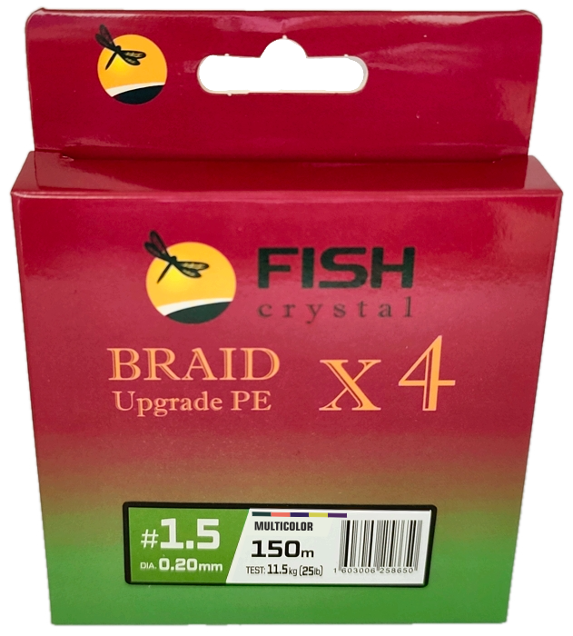 Плетёный шнур из 4-х нитей, FISH CRYSTAL 5-ти цветный, 0.20мм, 150м, 11.5 кг