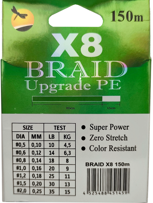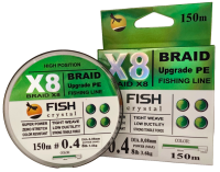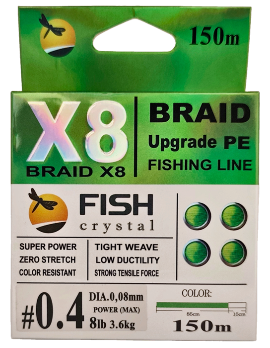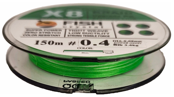 Плетёный шнур из 8-х нитей, FISH CRYSTAL NEON GREEN, # 0.4. Ø 0.08мм, 150м, 3,6кг