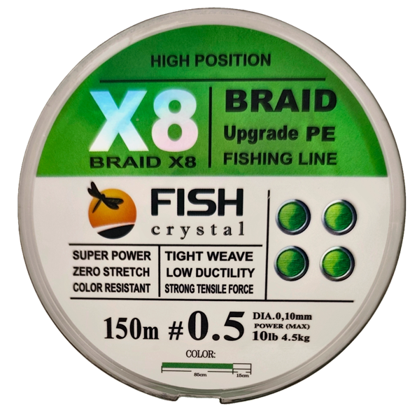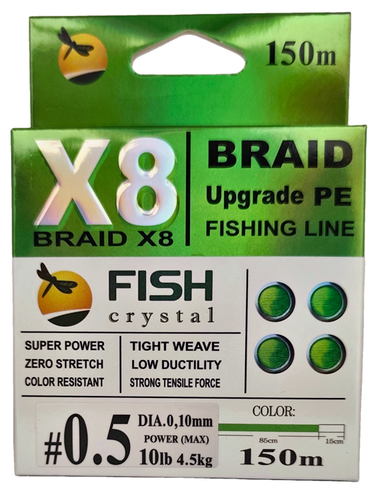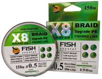 Плетёный шнур из 8-х нитей, FISH CRYSTAL NEON GREEN, # 0.5. Ø 0.10мм, 150м, 4,5кг
