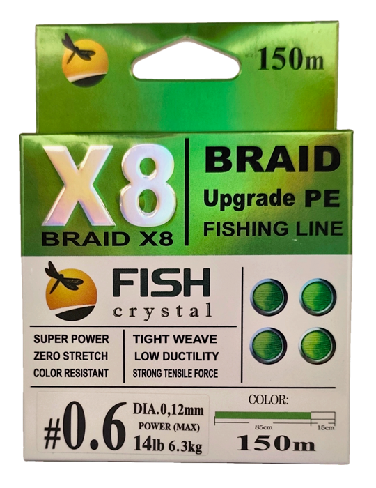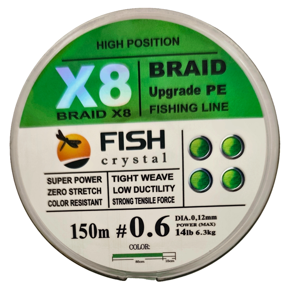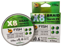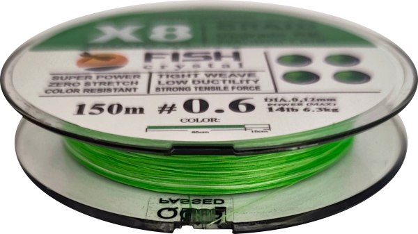 Плетёный шнур из 8-х нитей, FISH CRYSTAL NEON GREEN, # 0.6. Ø 0.12мм, 150м, 6,3кг