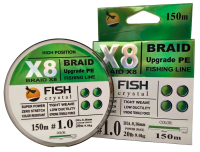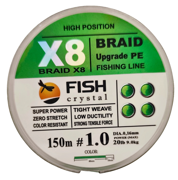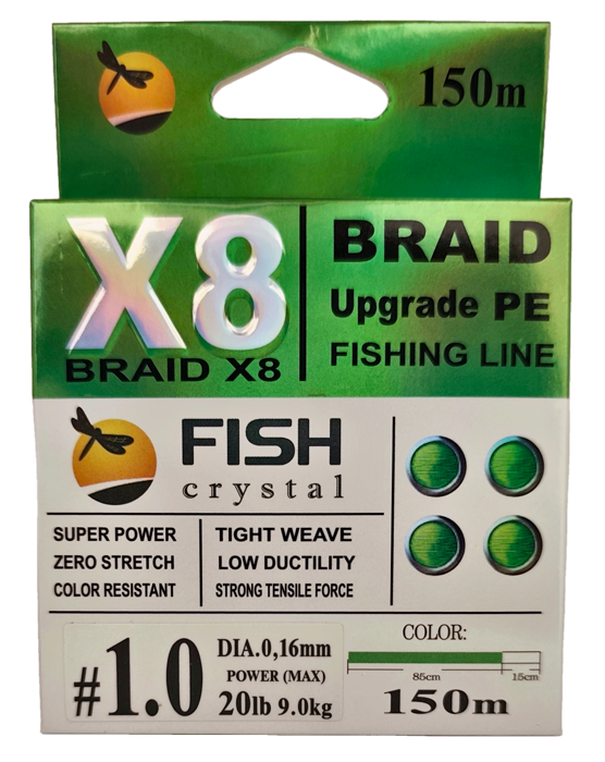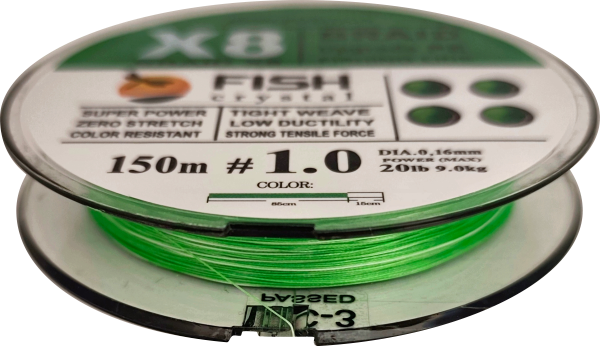 Плетёный шнур из 8-х нитей, FISH CRYSTAL NEON GREEN, # 1.0. Ø 0.16мм, 150м, 9.0кг