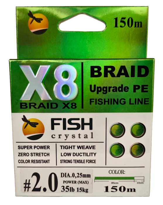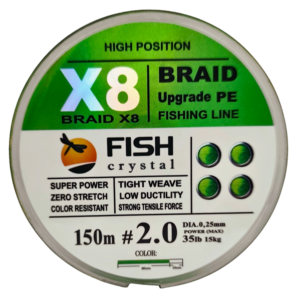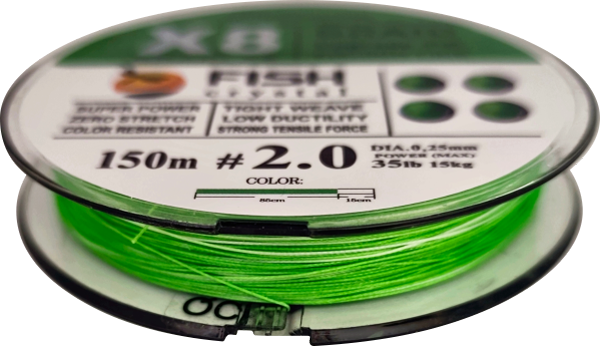 Плетёный шнур из 8-х нитей, FISH CRYSTAL NEON GREEN, # 2.0. Ø 0.25мм, 150м, 15.0кг