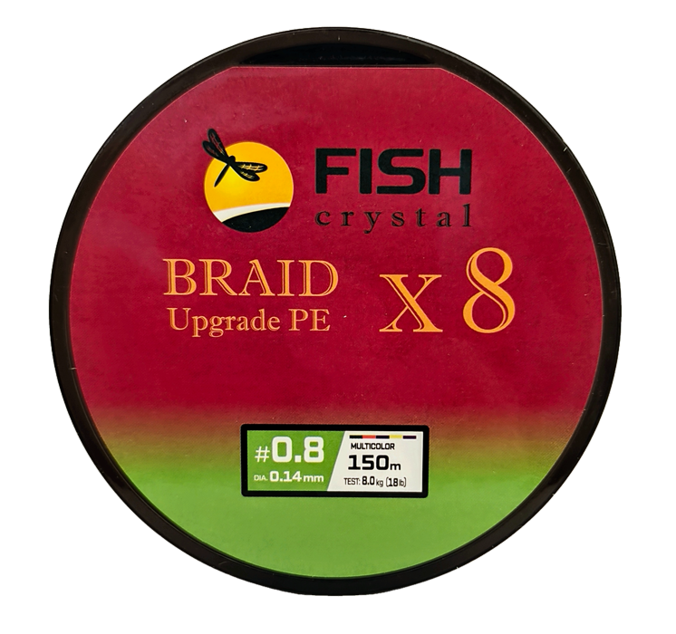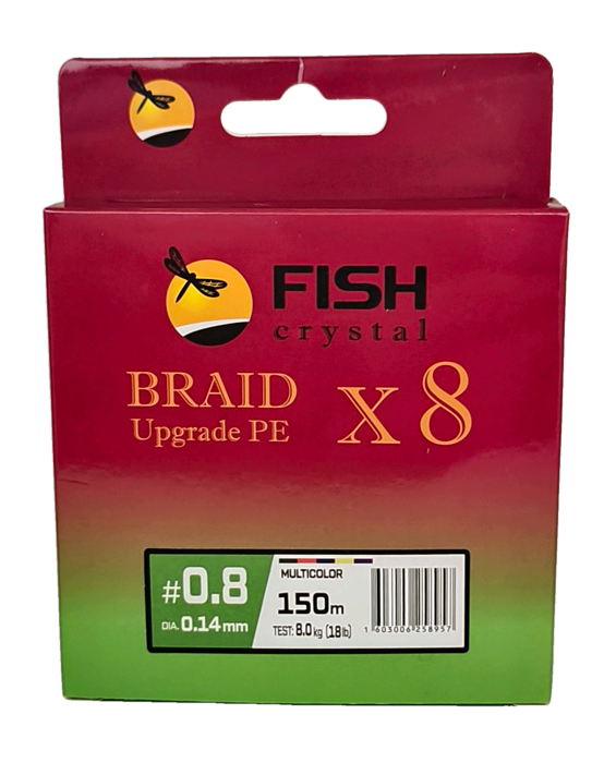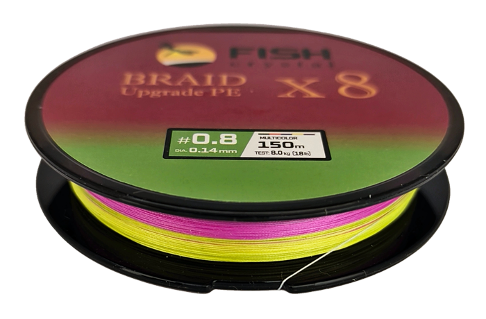 Плетёный шнур из 8-ми нитей, FISH CRYSTAL 5-ти цветный, 0.14мм, 150м, 8 кг
