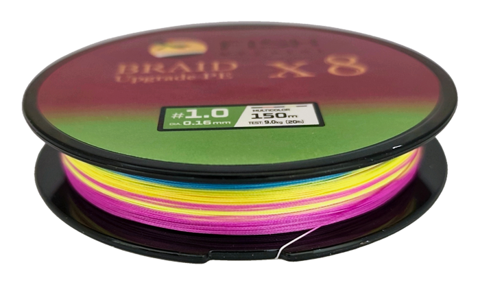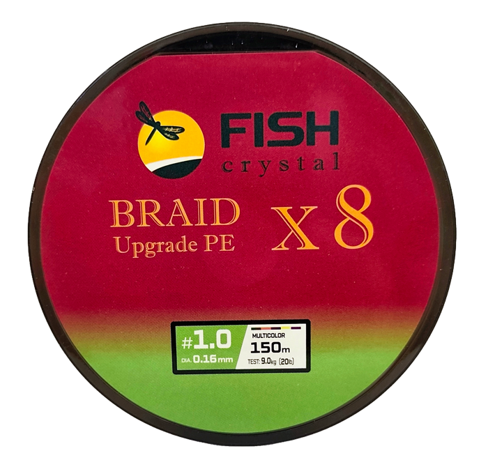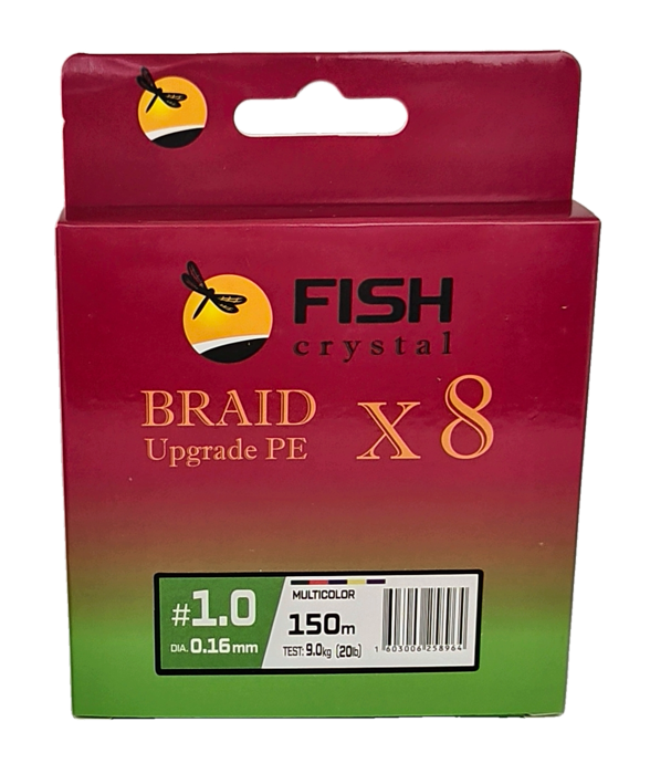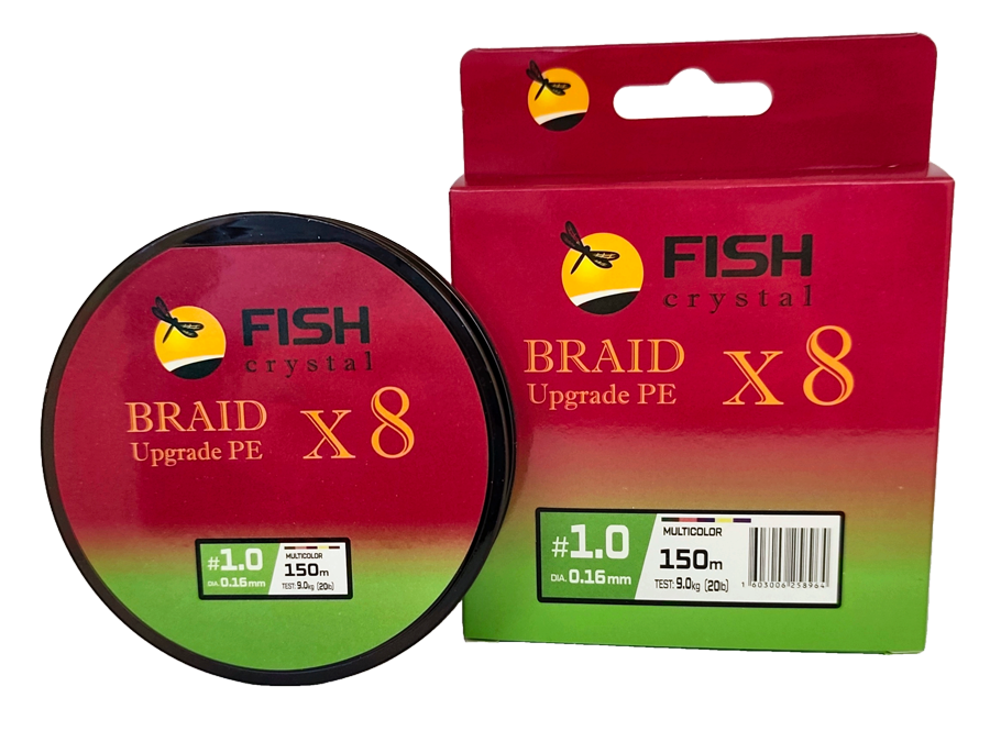 Плетёный шнур из 8-ми нитей, FISH CRYSTAL 5-ти цветный, 0.16мм, 150м, 9 кг
