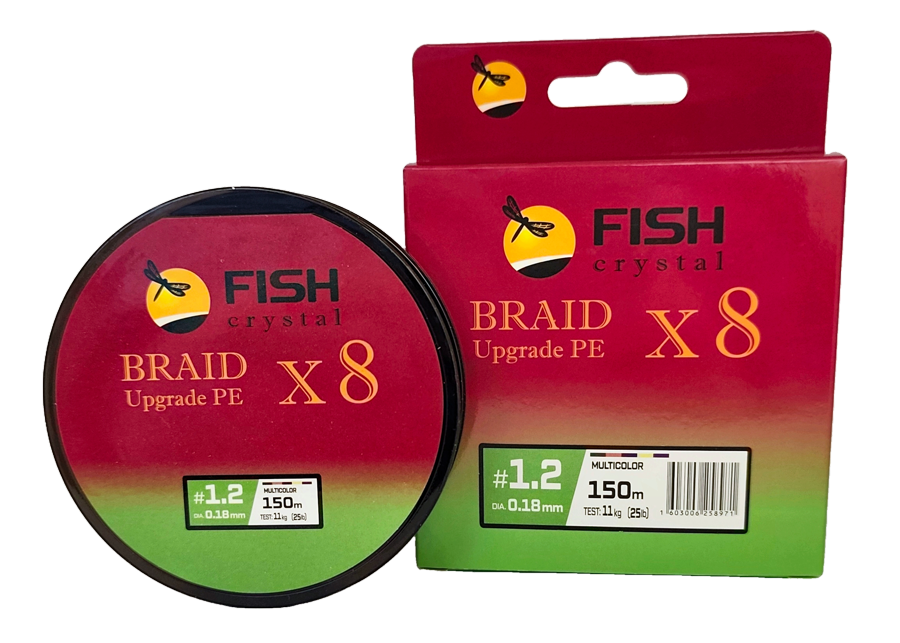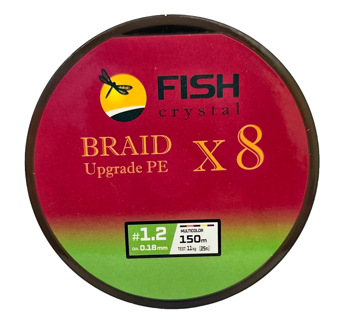 Плетёный шнур из 8-ми нитей, FISH CRYSTAL 5-ти цветный, 0.18мм, 150м, 11 кг
