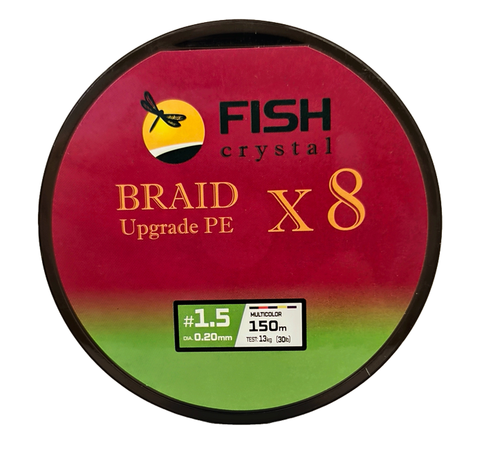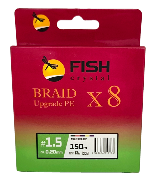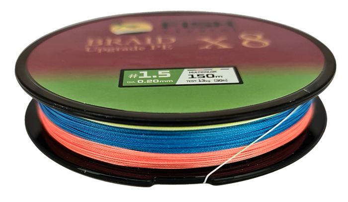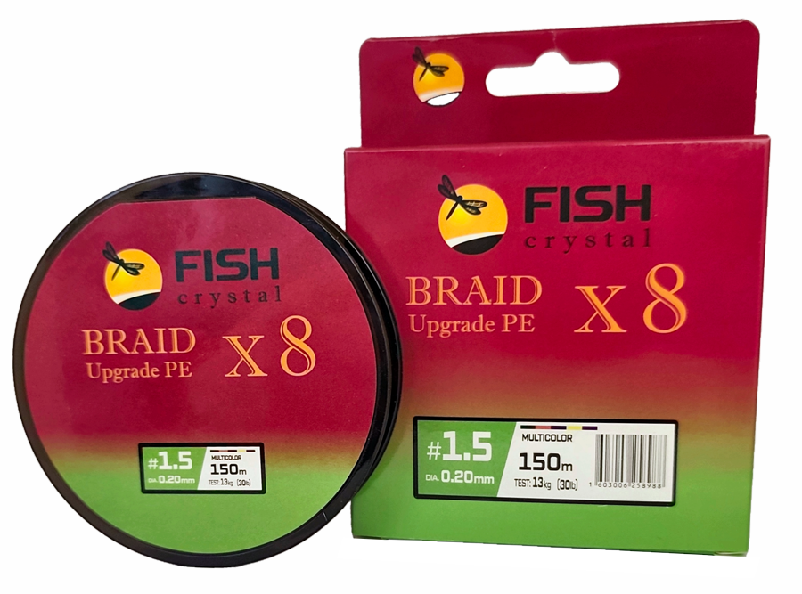 Плетёный шнур из 8-ми нитей, FISH CRYSTAL 5-ти цветный, 0.20 мм, 150м, 13 кг