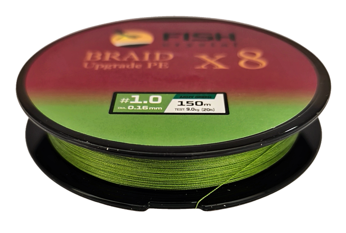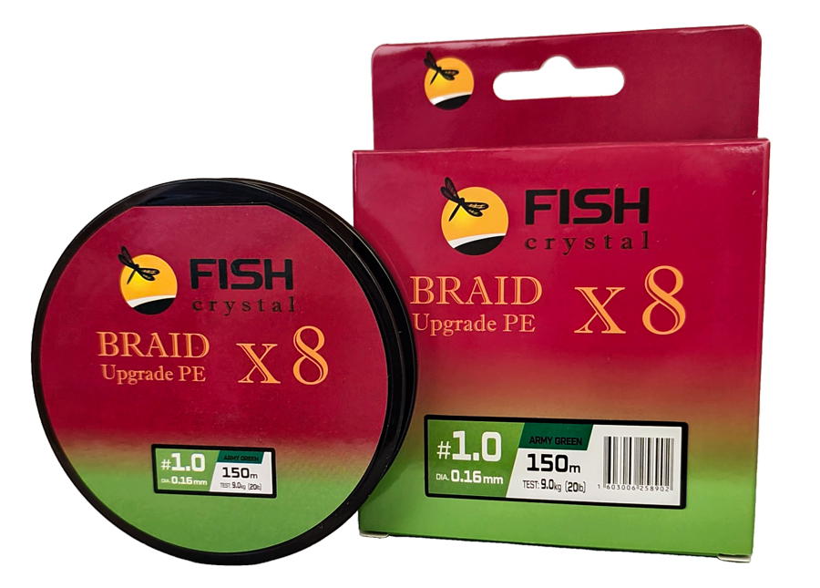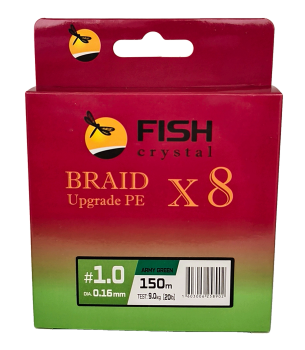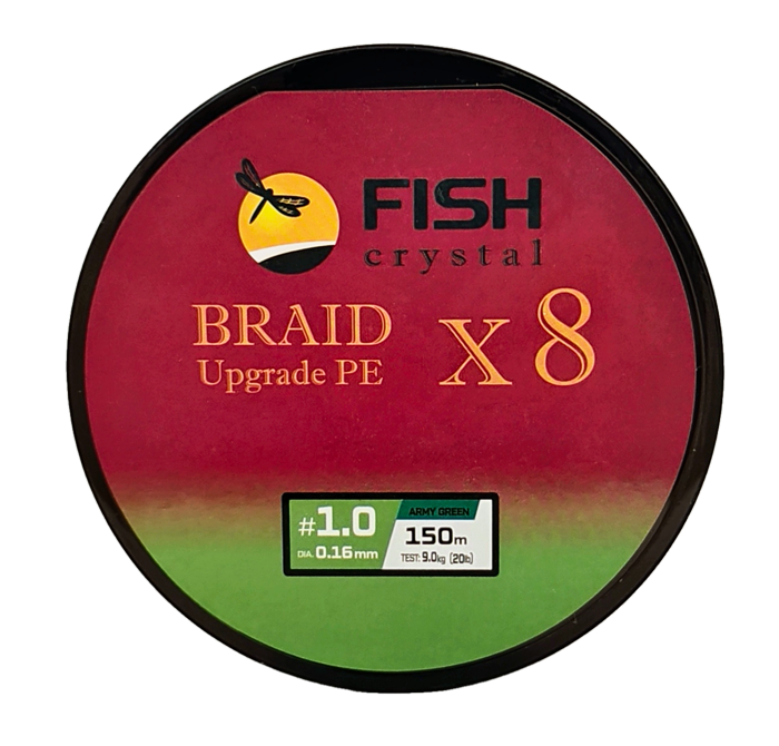 Плетёный шнур из 8-ми нитей, FISH CRYSTAL зелёный, 0.16мм, 150м, 9 кг