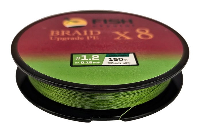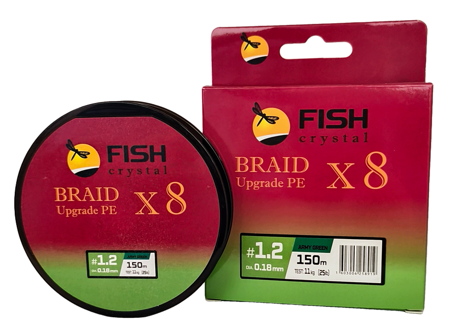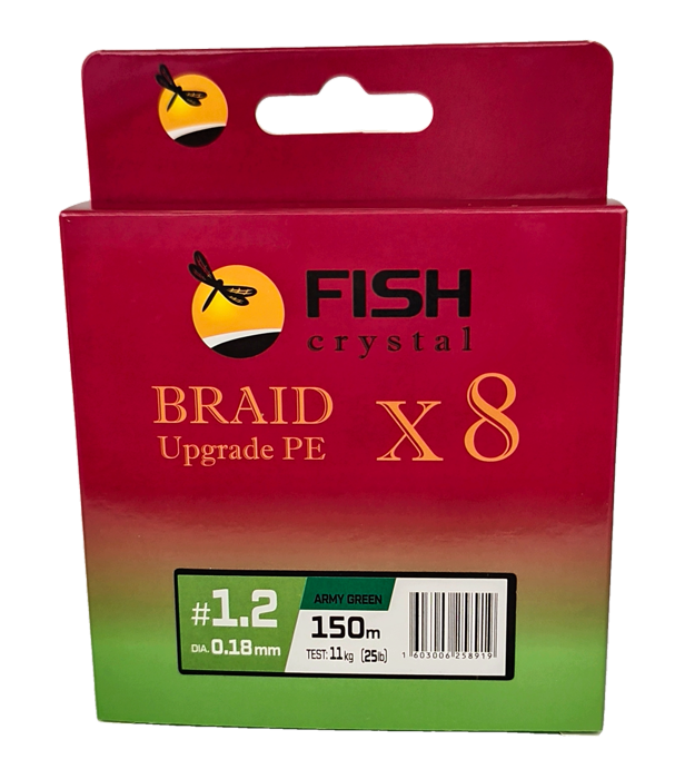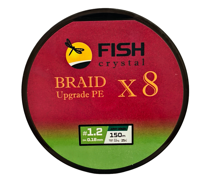Плетёный шнур из 8-ми нитей, FISH CRYSTAL зелёный, 0.18мм, 150м, 11кг