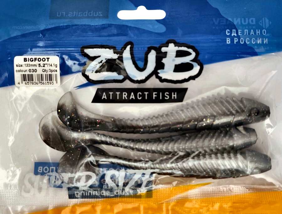 Приманка ZUB-BIGFOOT 133мм(5,2")-3шт, (цвет 030) черный верх-натурал низ