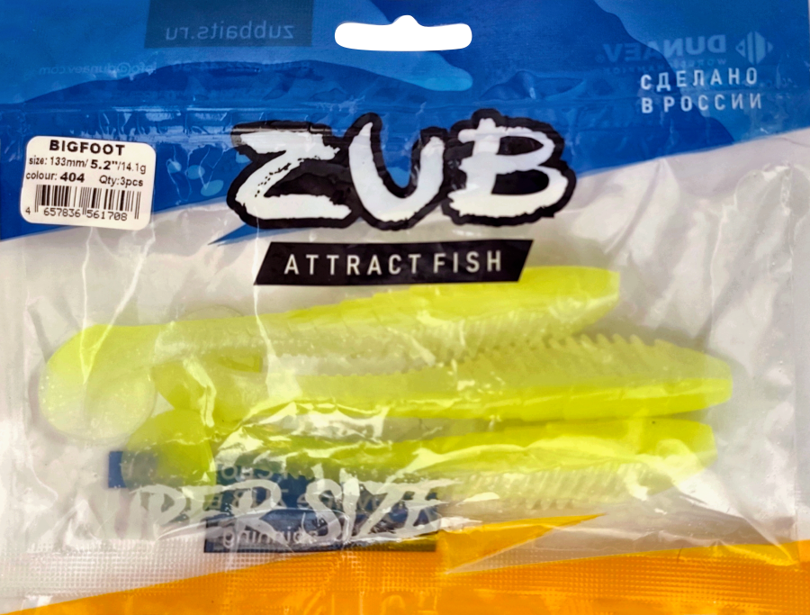 Приманка ZUB-BIGFOOT 133мм(5,2")-3шт, (цвет 404) желтый светящийся