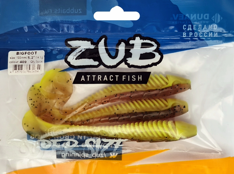 Приманка ZUB-BIGFOOT 133мм(5,2")-3шт, (цвет 409) машинное масло верх - желтый низ