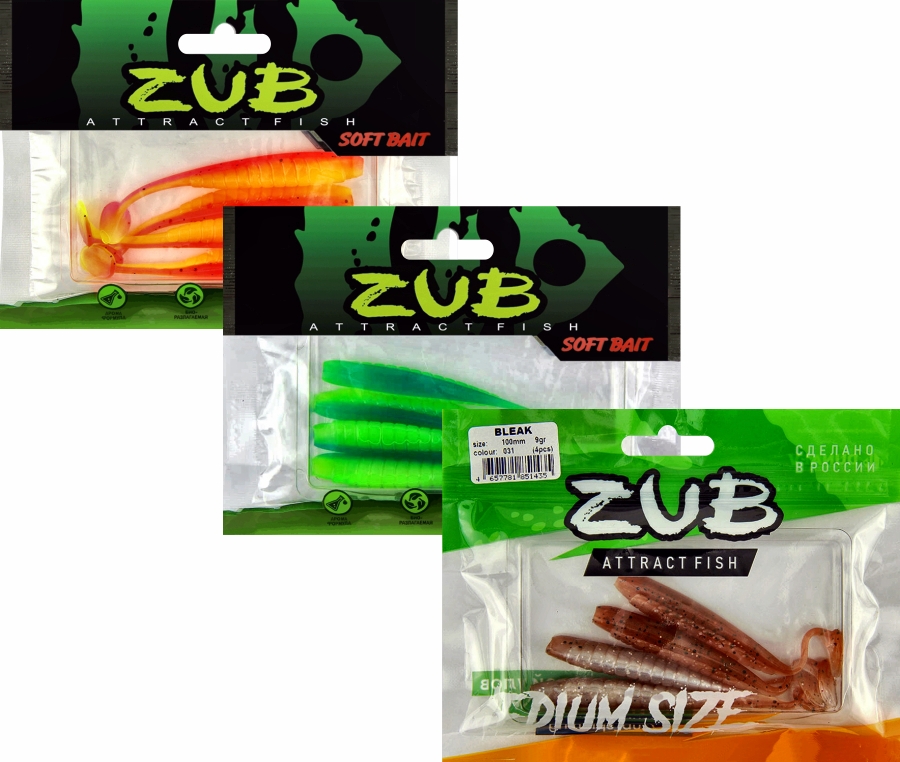 Приманка ZUB-BLEAK 100мм(4")-4шт, (Цвет 409) машинное масло верх - желтый низ