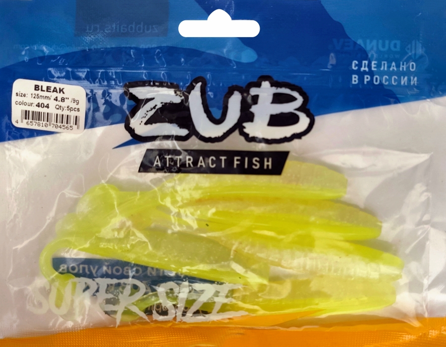 Приманка ZUB-BLEAK 125мм(4,8")-5шт, (цвет 404) желтый светящийся