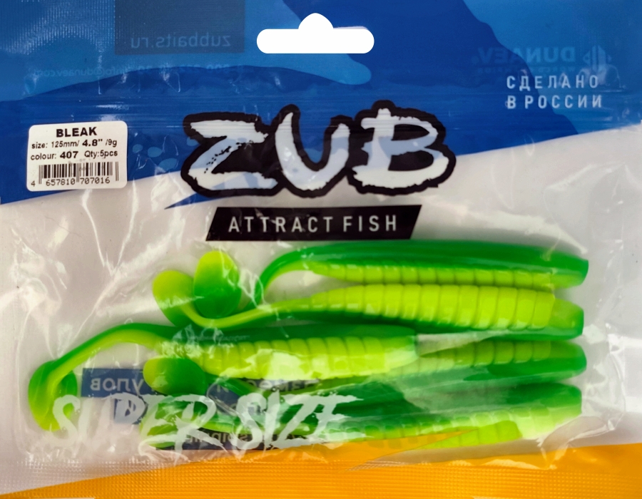 Приманка ZUB-BLEAK 125мм(4,8")-5шт, (Цвет 407)зеленый верх - желтый низ