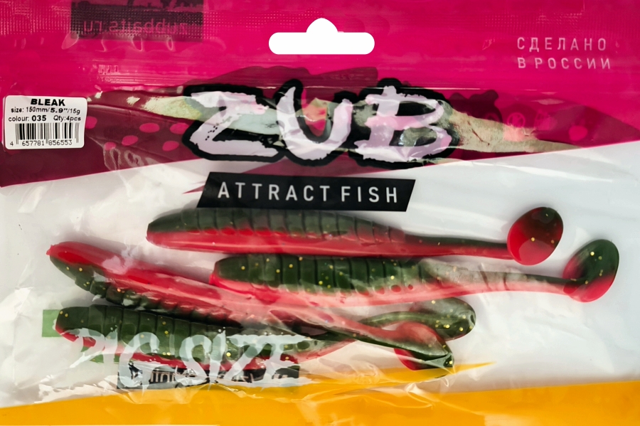 Приманка ZUB-BLEAK 150мм(5,9")-4шт, (цвет 035) красный верх-зеленый низ