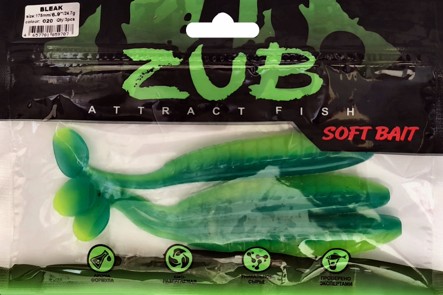 Приманка ZUB-BLEAK 175мм(6.9")-3шт, (цвет 020) синий верх - желтый низ