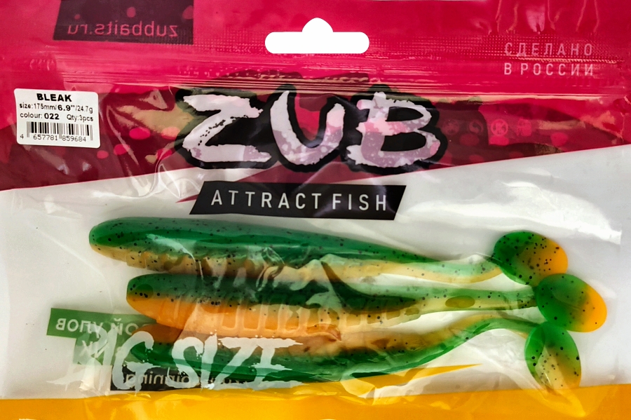 Приманка ZUB-BLEAK 175мм(6.9")-3шт, (цвет 022) зеленый верх -оранжевый низ