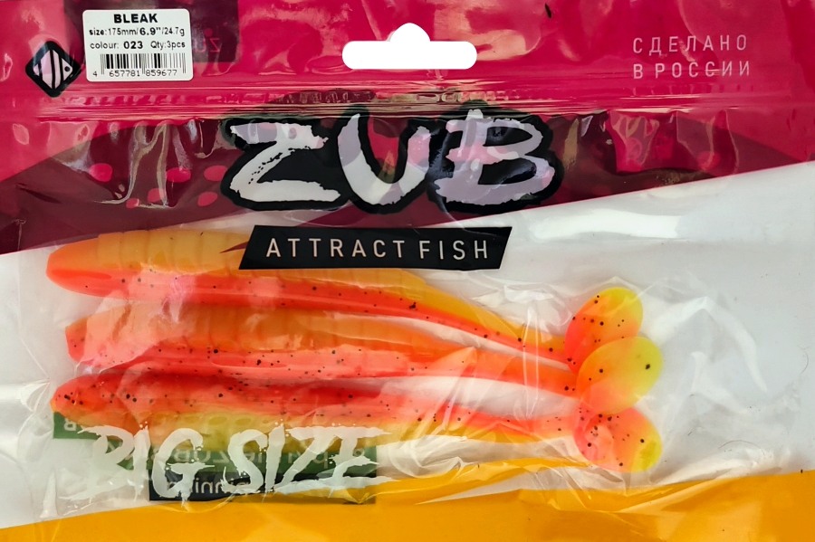 Приманка ZUB-BLEAK 175мм(6.9")-3шт, (цвет 023) розовый верх - желтый низ