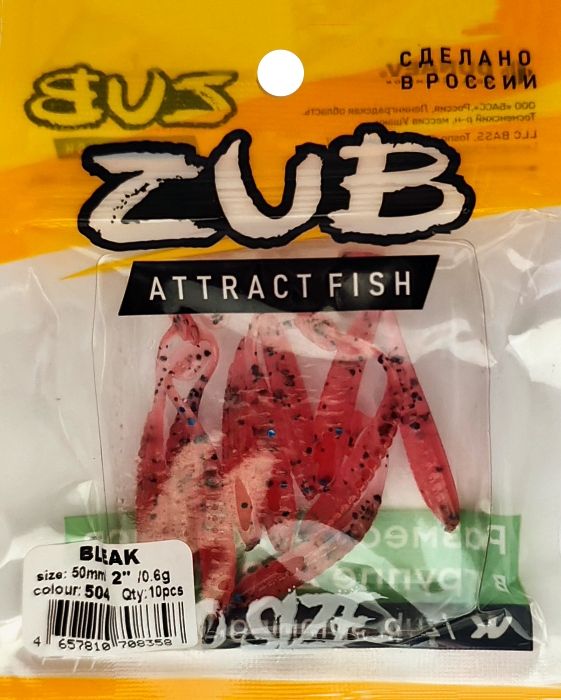 Приманка ZUB-BLEAK 50мм(2")-10шт, (цвет 504) красный с блестками