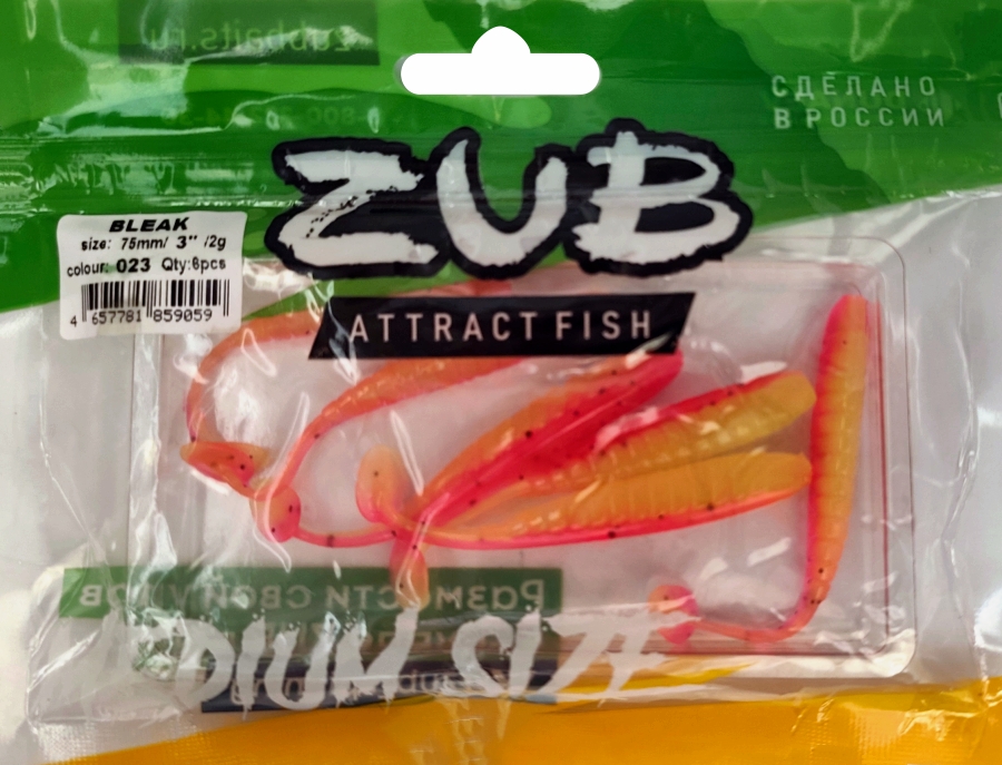 Приманка ZUB-BLEAK 75мм(3")-6шт, (цвет 023) розовый верх - желтый низ