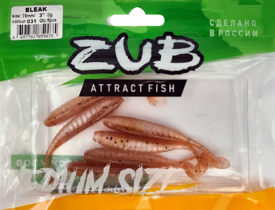 Приманка ZUB-BLEAK 75мм(3")-6шт, (цвет 031) карамель верх - натурал низ