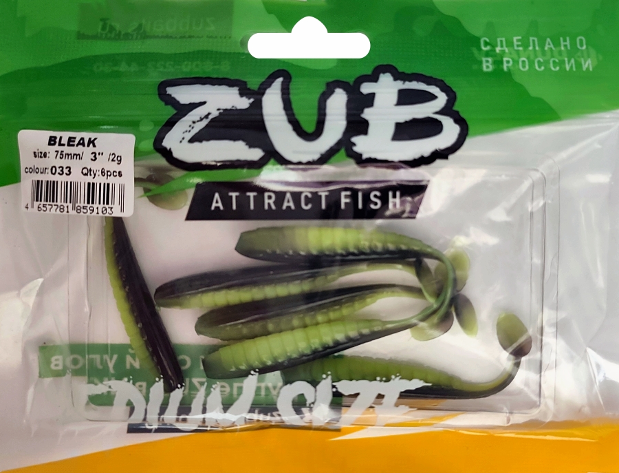 Приманка ZUB-BLEAK 75мм(3")-6шт, (цвет 033) черный верх - желтый низ