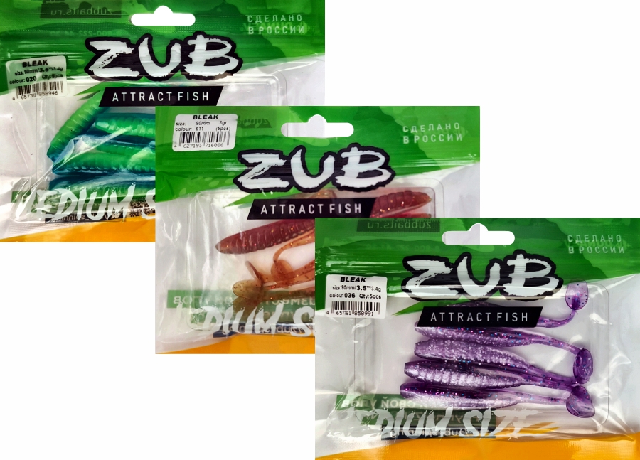 Приманка ZUB-BLEAK 90мм(3,5")-5шт, (цвет 036) фиолетовый верх - натурал низ