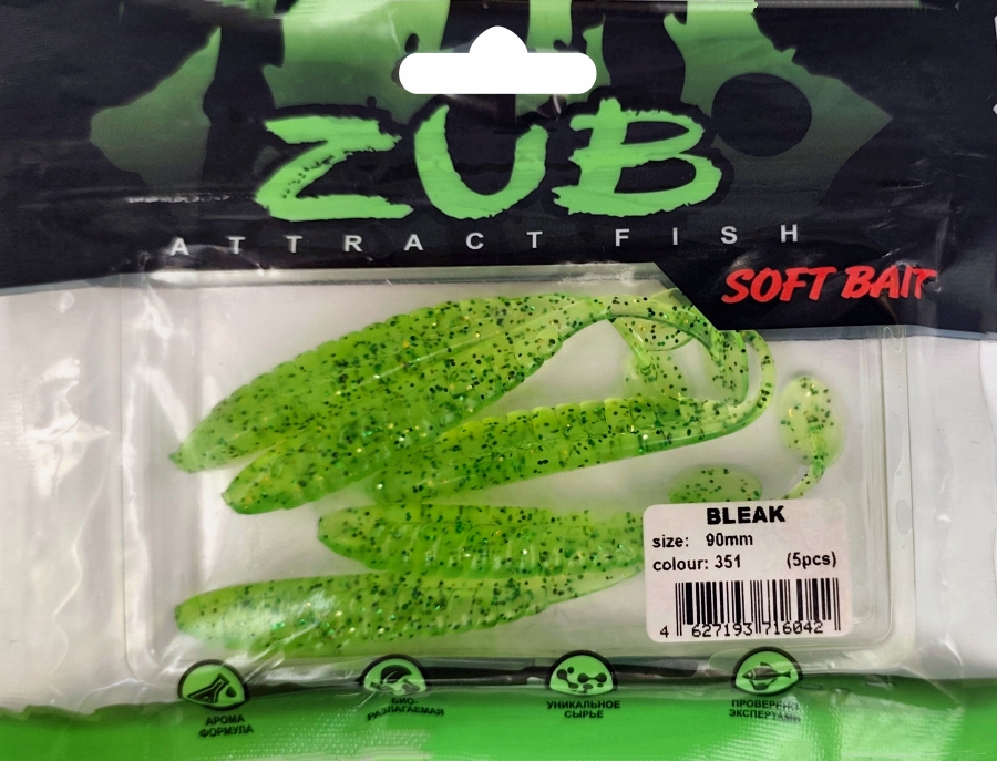 Приманка ZUB-BLEAK 90мм(3,5")-5шт, (цвет 351) шартрез с блестками