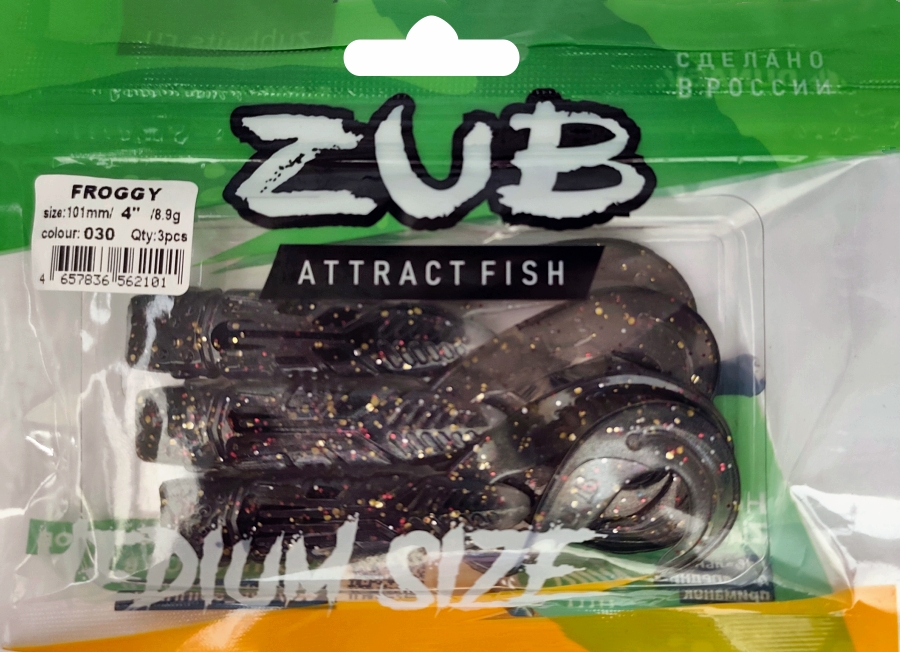 Приманка ZUB-FROGGY 101мм(4")-3шт, (цвет 030) черный верх-натурал низ