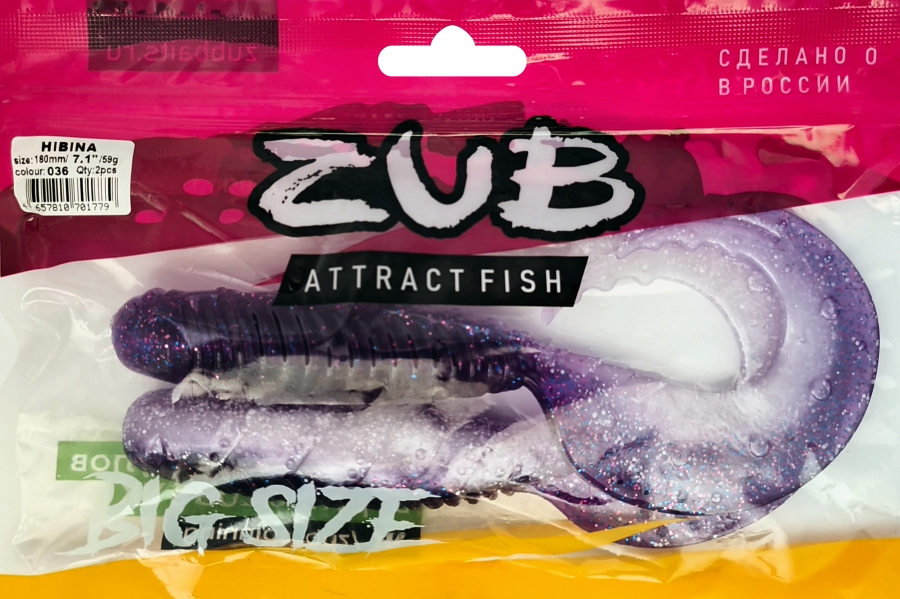 Приманка ZUB-HIBINA 180мм(7,1")-2шт, (цвет 036) фиолетовый верх-натурал низ