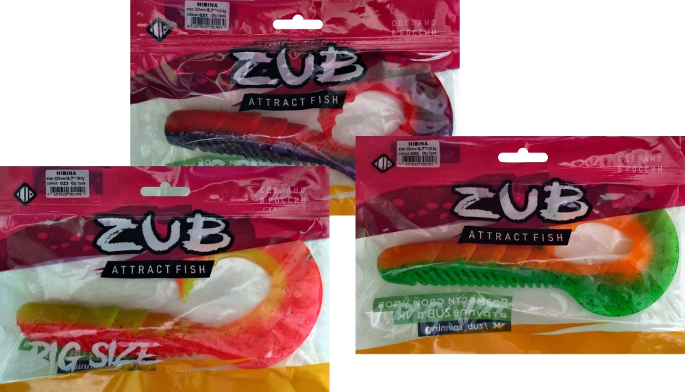 Приманка ZUB-HIBINA 220мм(8,7")-1шт, (Цвет 407)зеленый верх - желтый низ