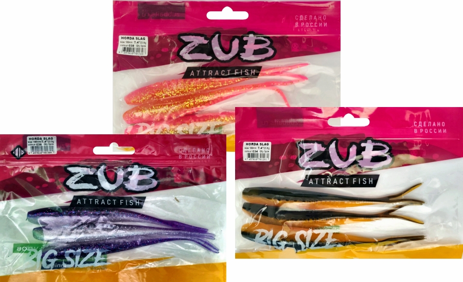 Приманка ZUB-HORDA SLAG 188мм(7,4")-3шт, (цвет 403) зеленый светящийся