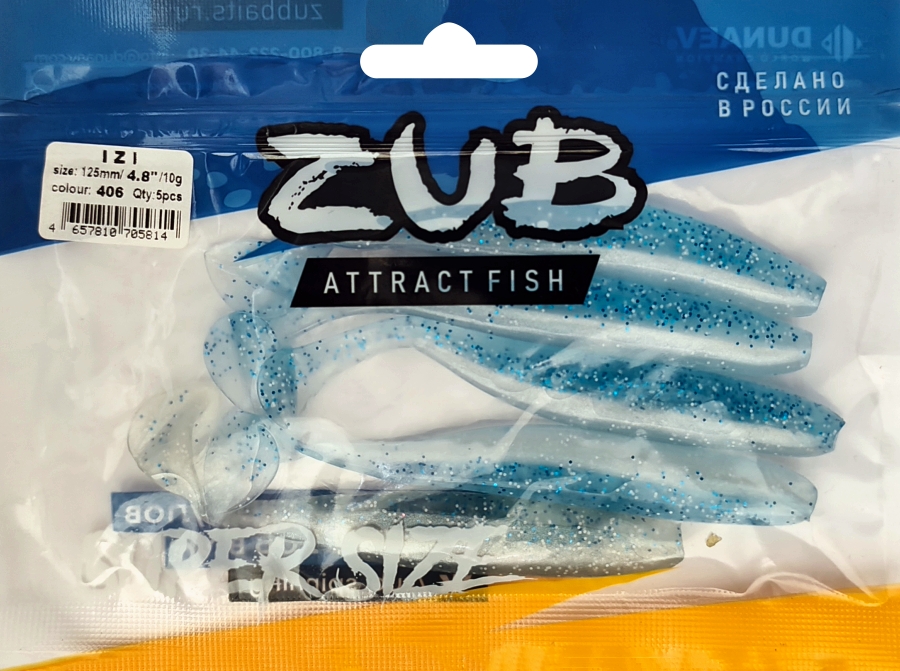 Приманка ZUB-IZI 125мм(4,8")-5шт, (Цвет 406) голубой верх - перламутр низ