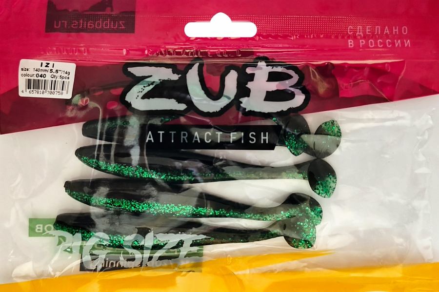 Приманка ZUB-IZI 140мм(5,5")-5шт, (цвет 040) черный верх - изумрудный низ
