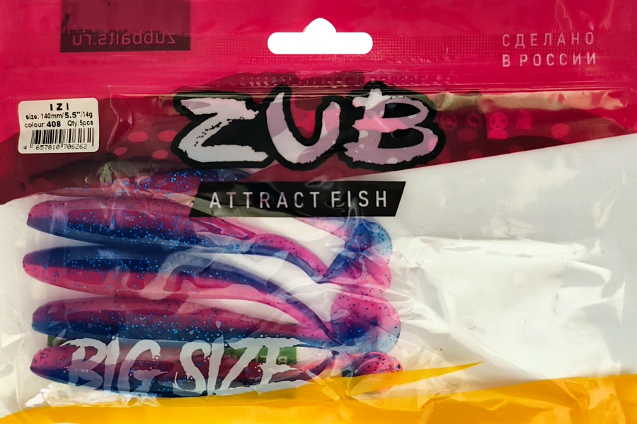 Приманка ZUB-IZI 140мм(5,5")-5шт, (Цвет 408) синий верх - розовый низ