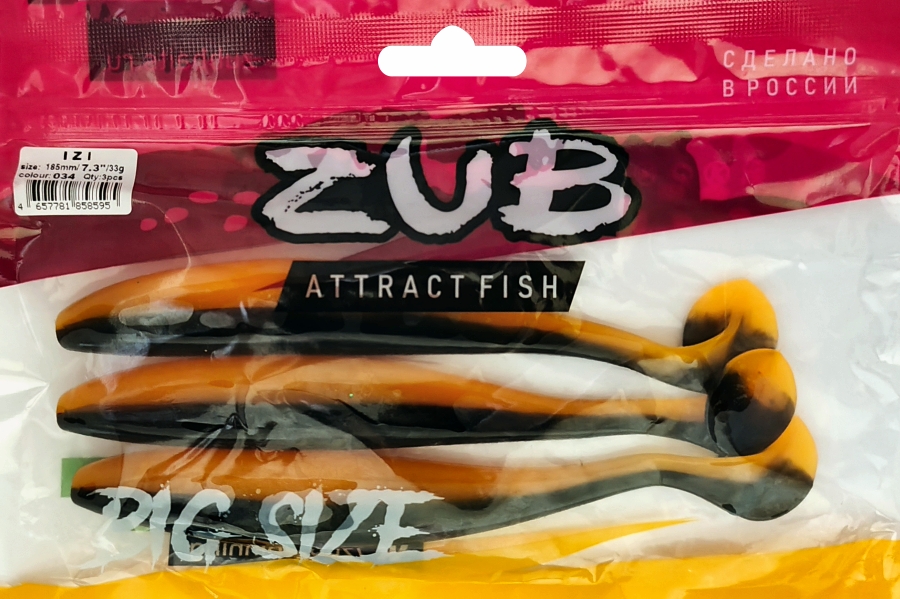 Приманка ZUB-IZI 185мм(7,3")-3шт, (цвет 034) черный верх - оранжевый низ