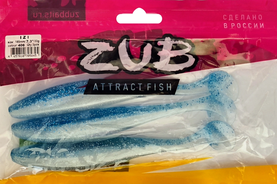 Приманка ZUB-IZI 185мм(7,3")-3шт, (Цвет 406) голубой верх - перламутр низ