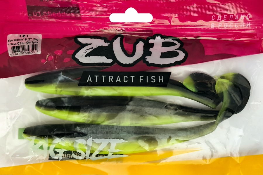 Приманка ZUB-IZI 208мм(8,2")-3шт, (цвет 033) черный верх - желтый низ