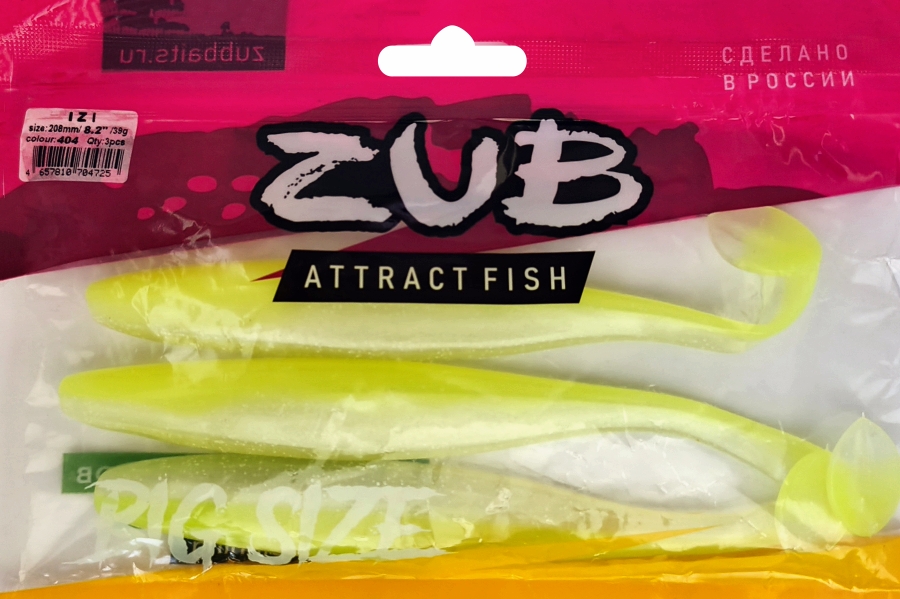 Приманка ZUB-IZI 208мм(8,2")-3шт, (цвет 404) желтый светящийся
