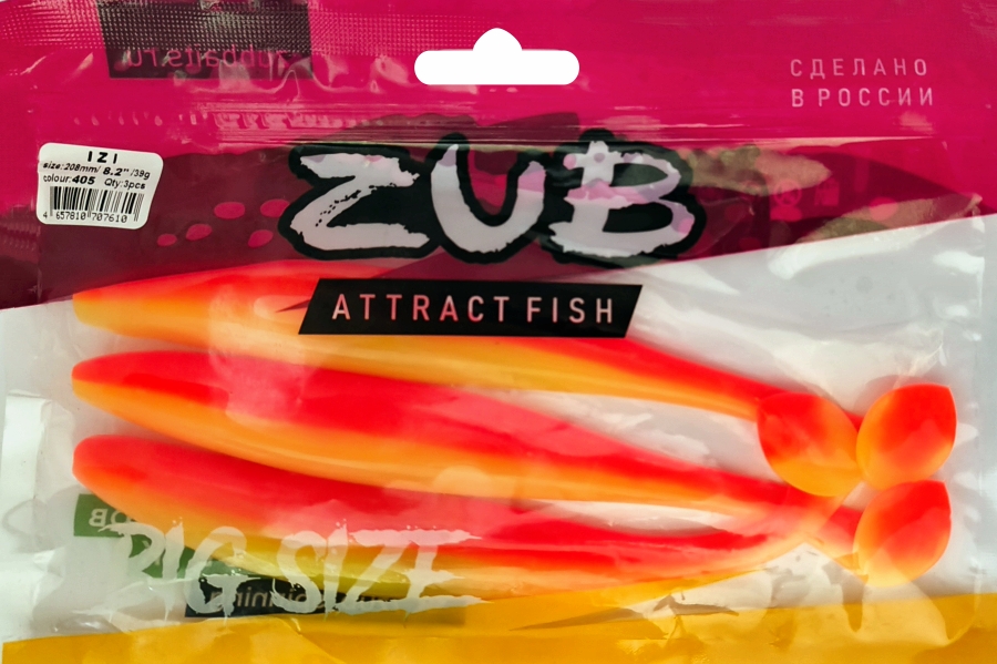 Приманка ZUB-IZI 208мм(8,2")-3шт, (Цвет 405) желтый верх - оранжевый низ