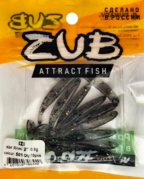 Приманка ZUB-IZI 50мм(2")-10шт, (цвет 501) серый с блестками
