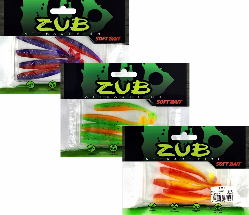 Приманка ZUB-IZI 86мм(3,4")-5шт, (Цвет 405) желтый верх - оранжевый низ