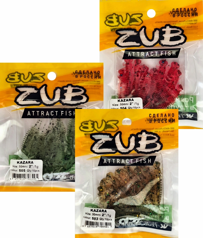 Приманка ZUB-KAZARA 50мм(2")-10шт, (цвет 501) серый с блестками