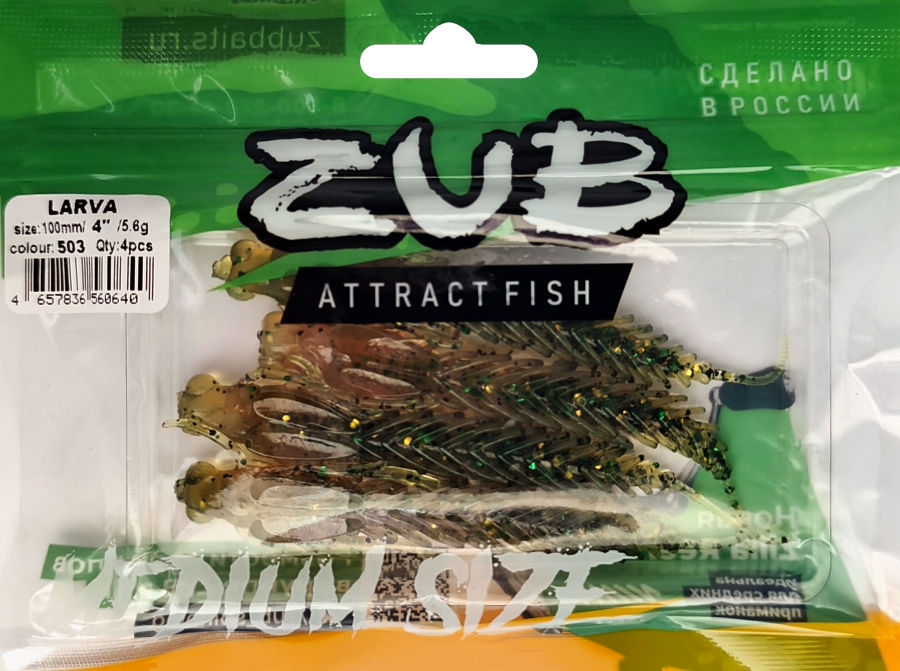 Приманка ZUB-LARVA 100мм(4")-4шт, (цвет 503) коричневый с блестками