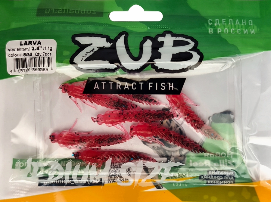 Приманка ZUB-LARVA 60мм(2,4")-7шт, (цвет 504) красный с блестками
