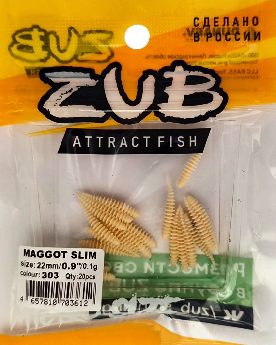 Приманка ZUB-MAGGOT SLIM 22мм(0,9")-20шт, (цвет 303) телесный