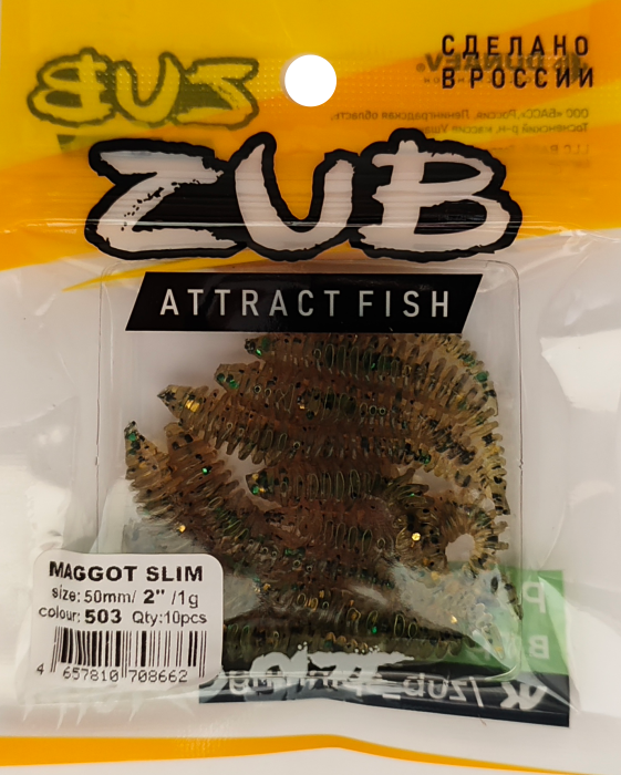 Приманка ZUB-MAGGOT SLIM 50мм(2")-10шт, (цвет 503) коричневый с блестками