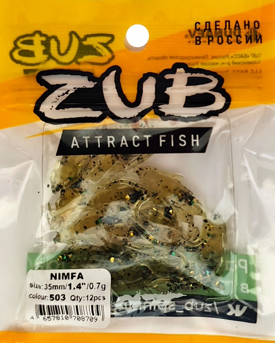 Приманка ZUB-NIMFA 35мм(1,4")-12шт, (цвет 503) коричневый с блестками