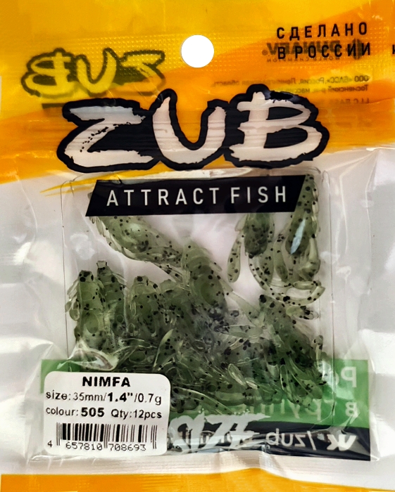 Приманка ZUB-NIMFA 35мм(1,4")-12шт, (цвет 505) зеленый с блестками